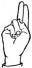 На ћирилици написано РЕЉА ТАШИН састоји се из 9 слова [?]. Исписано ћириличном једноручном азбуком за глувонеме: